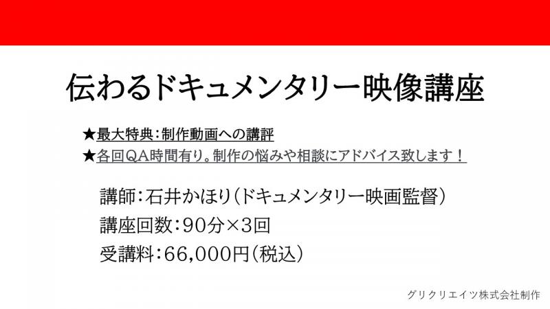 題して「伝わるドキュメンタリー映像講座」です。